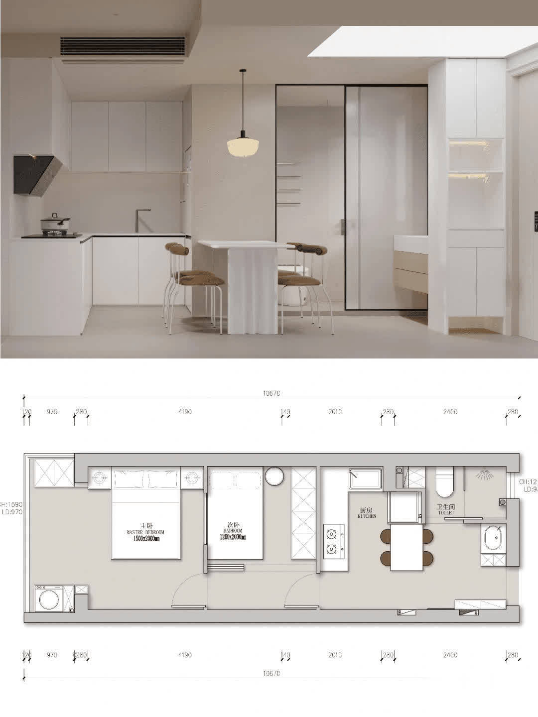 一、长条形户型长条形户型多为中间户,通常是为了迁就隔壁大面积房源而分割出的剩余空间组合而成。这类户型的实际使用面积有限,功能区域也被压缩得很小。
